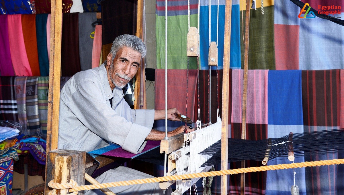 أشرف نولا.. ذاك أسمه الذي عُرف به، يؤكد كل من تعامل معه أنه ذو أصابع الذهبية، تخصص منذ الصغير في حرفة صناعة الشيلان النوبية اليدوية، ورث تلك المهنة أب عن جد، داخل ورشته الصغيرة، تجده يجلس علي آلته الخشبية اليدوية البسيطة، يجاوره تلميذه، ذلك الصانع الصغير، يتلمس منه أصول تلك الحرفة العتيقة، ليشب يومًا كمُعلمة ملكًا للمشغولات النسجية النوبية.