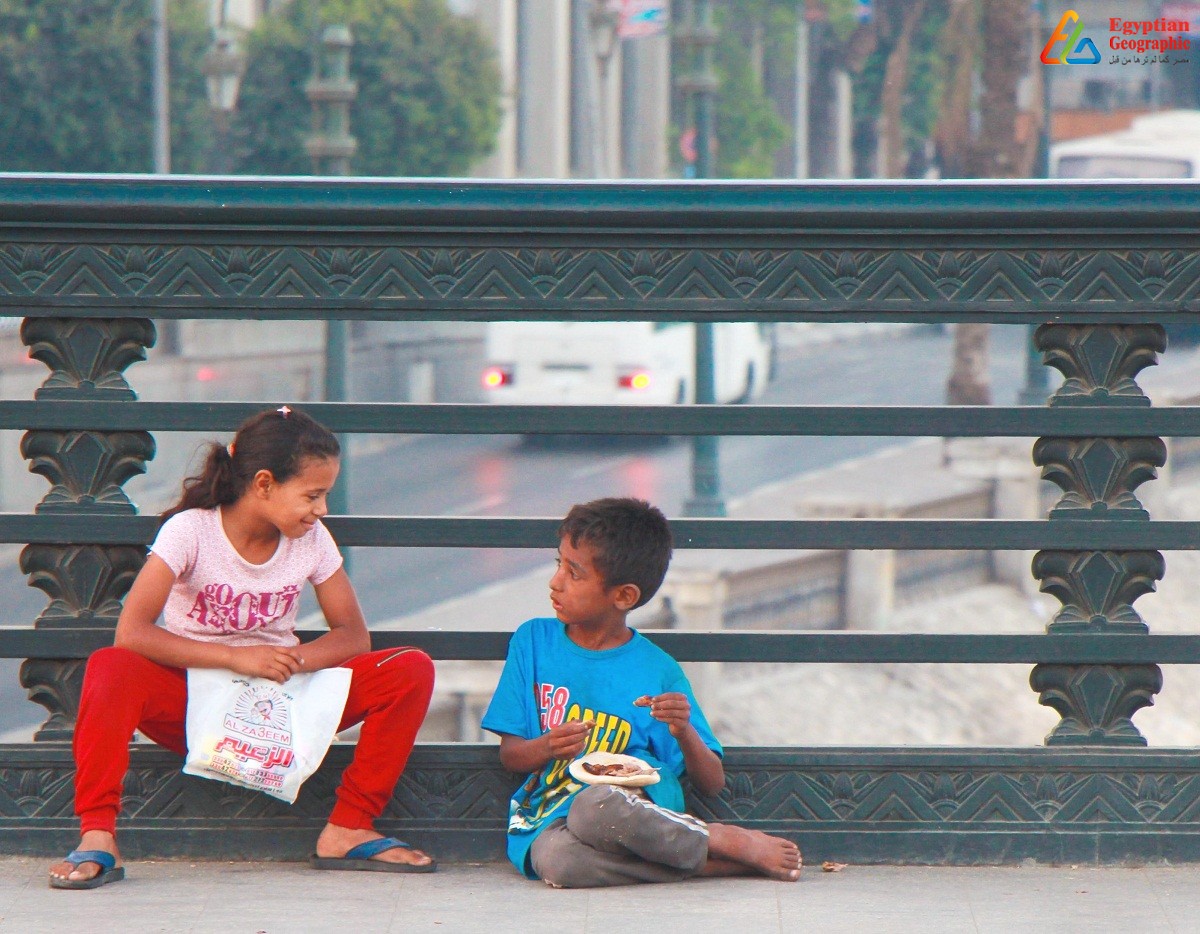 علي كوبري قصر النيل كان اللقاء، طفل ينتظر شقيقته تأتيه بالطعام، كانت فرحة غامرة، حينما جاءت بوجبته المُفضلة، رغيف عيش وقطة صغيرة من الدجاج، صادف الموقف مرور الزميل إسلام قطب، مصور الإيجيبشيان جيوجرافيك، ليسجل ذلك المشهد بصورة تؤرخ لتلك البراءة فوق كوبري قصر النيل