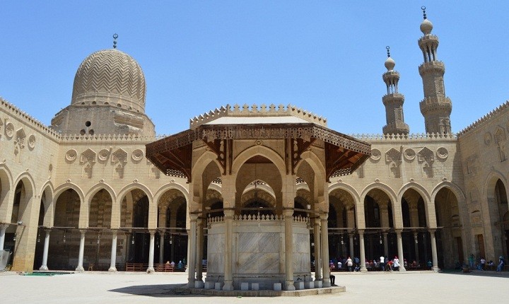 "لم يعمر في الإسلام أكثر منه زخرفة، ولا أحسن منه ترخيمًا بعد الجامع الأموي".. بتلك الكلمات وصف المؤرخ المصري شمس الدين أبو الخير محمد السخاوي في القرن الـ15 ذلك الأثر الإسلامي العريق، والذي يقف شامخًا منذ أكثر من 600 عام مضت، ليكون شاهدًا على روعة العمارة في العصر المملوكي، بل وفي العصر