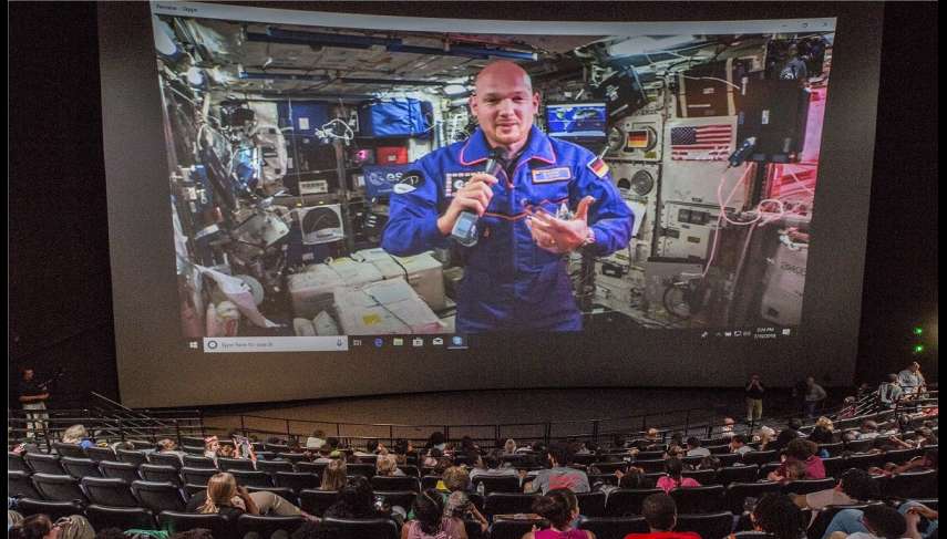 "Here at the International Space Station, we hear you clearly." At Virginia Air & Space Center IMAX Theater in Hampton, Virginia, European Space Agency (ESA) astronaut Alexander Gerst responded to Pamela Northam, the first lady of Virginia, who were saying, "It's Langley